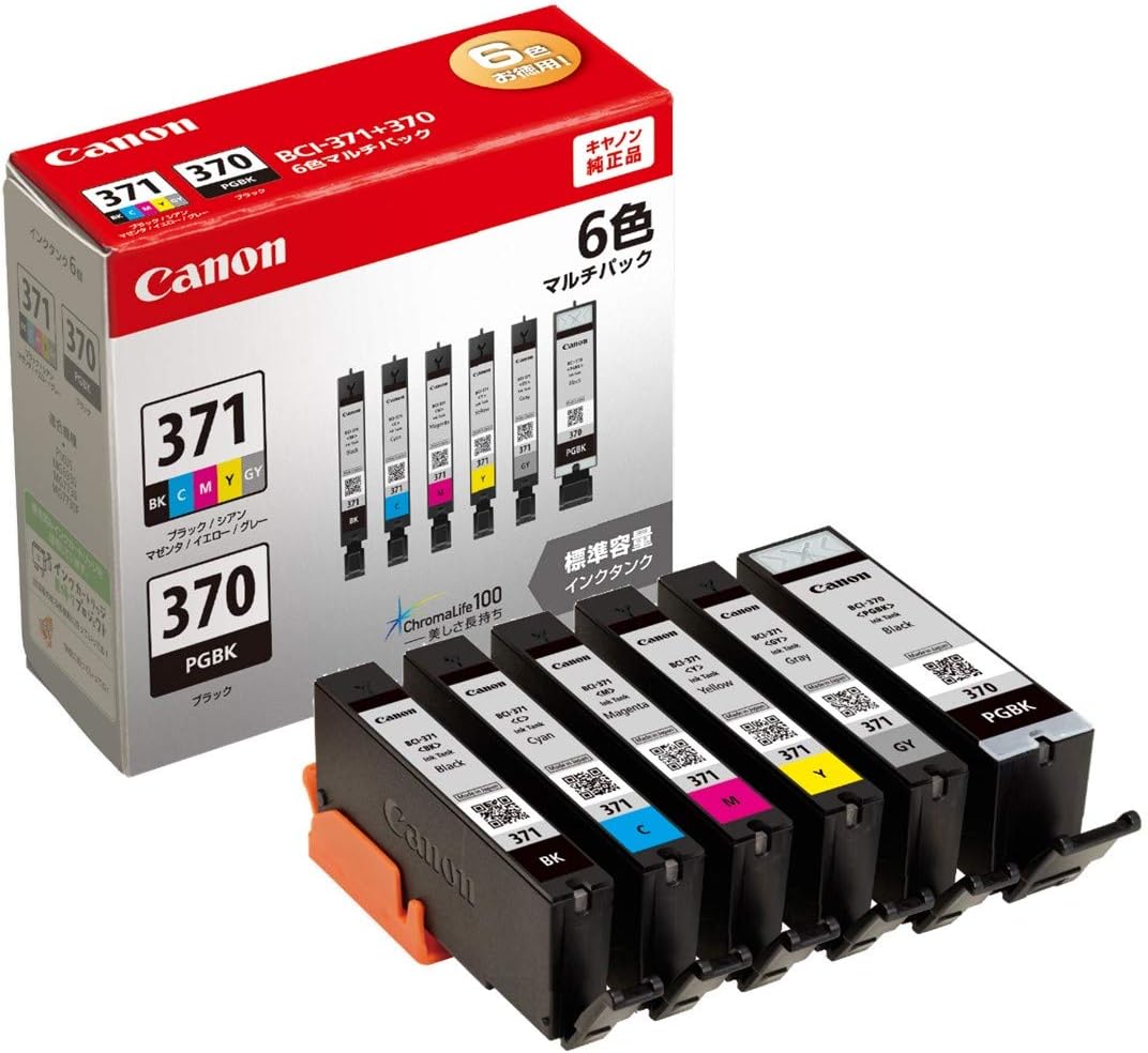 | BCI-370(PGBK)-顔料 BCI-371(BK/C/M/Y/GY)-染料 【標準6色セット】 |